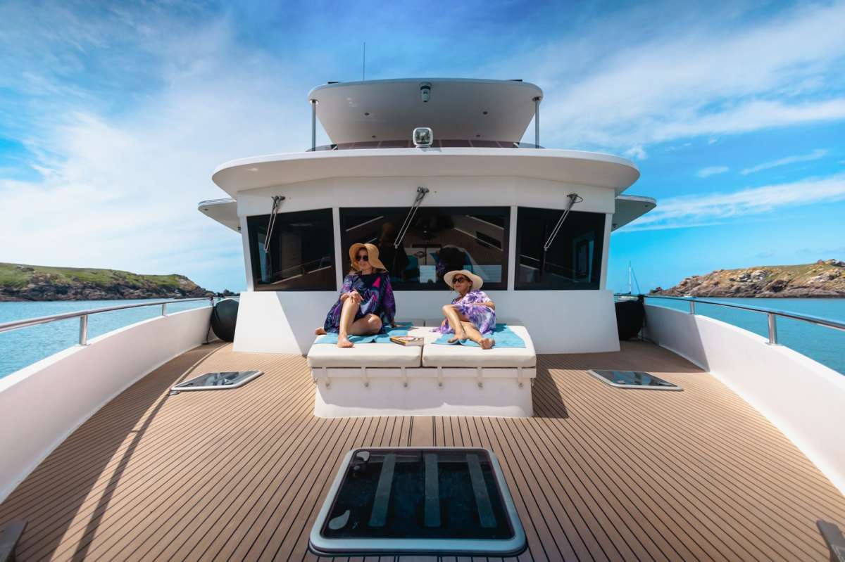 The spirit of L'INEDCIS has been placed on space, comfort and well-being on board. The equipment chosen for the yacht is of the highest quality, as is the nautical equipment. There is also a system for treating the water discharged by the yacht to avoid polluting the environment. L'Indécis offers three double cabins, one of which is on the same level, with an extraordinary sea view from your bed. You will also enjoy an incredible flybridge, undoubtedly one of the largest for a boat of this size. The two crew members have also been carefully selected to offer you an incredible stay aboard L'Indécis. Why a power trimaran? Quite simply for the incredible space, comfort and stability it offers, and for its incredibly low fuel consumption thanks to its three slim hulls and two additional electric engines, allowing you to arrive silently at idyllic anchorages. Welcome aboard for an incredible experience.