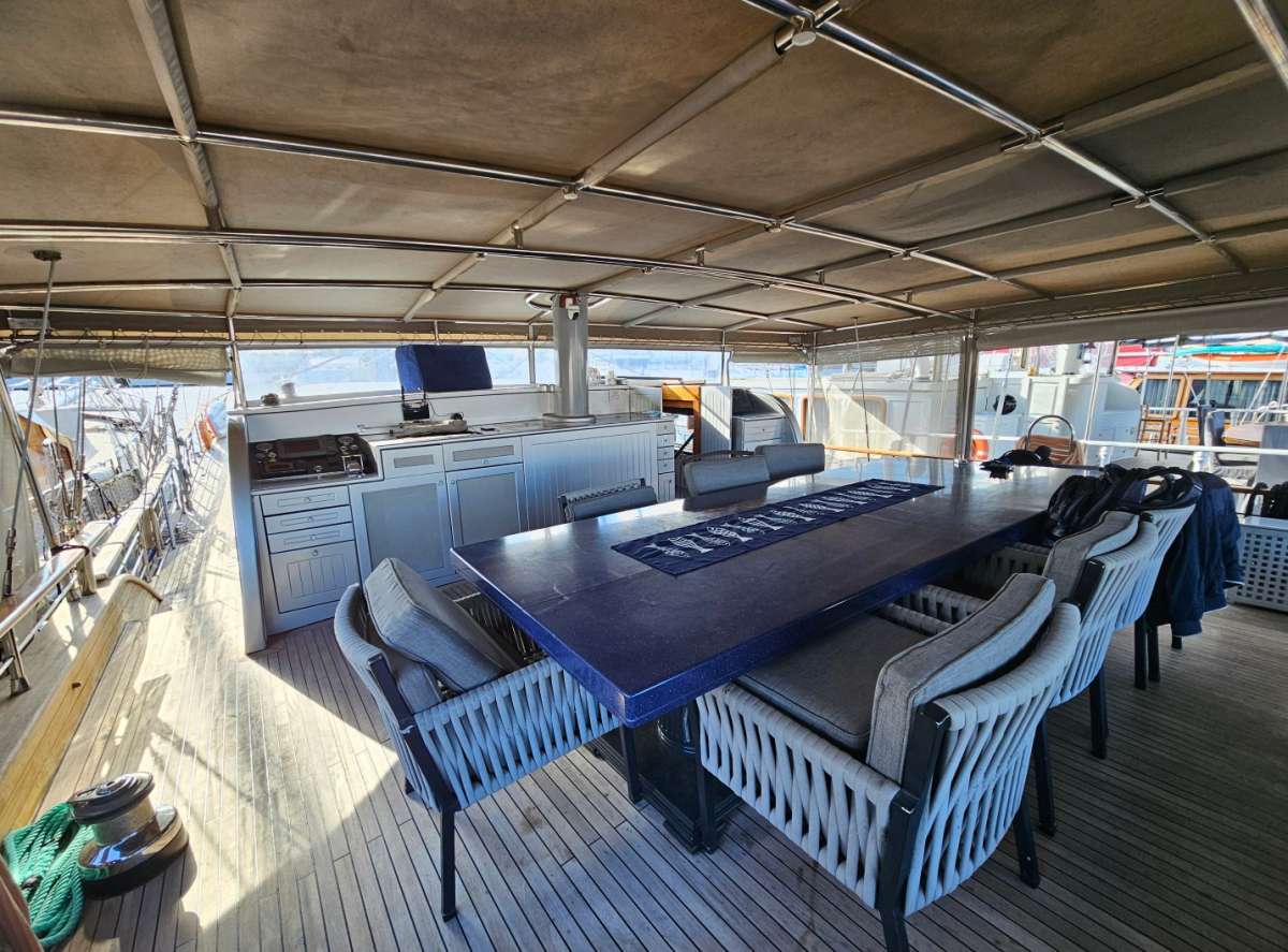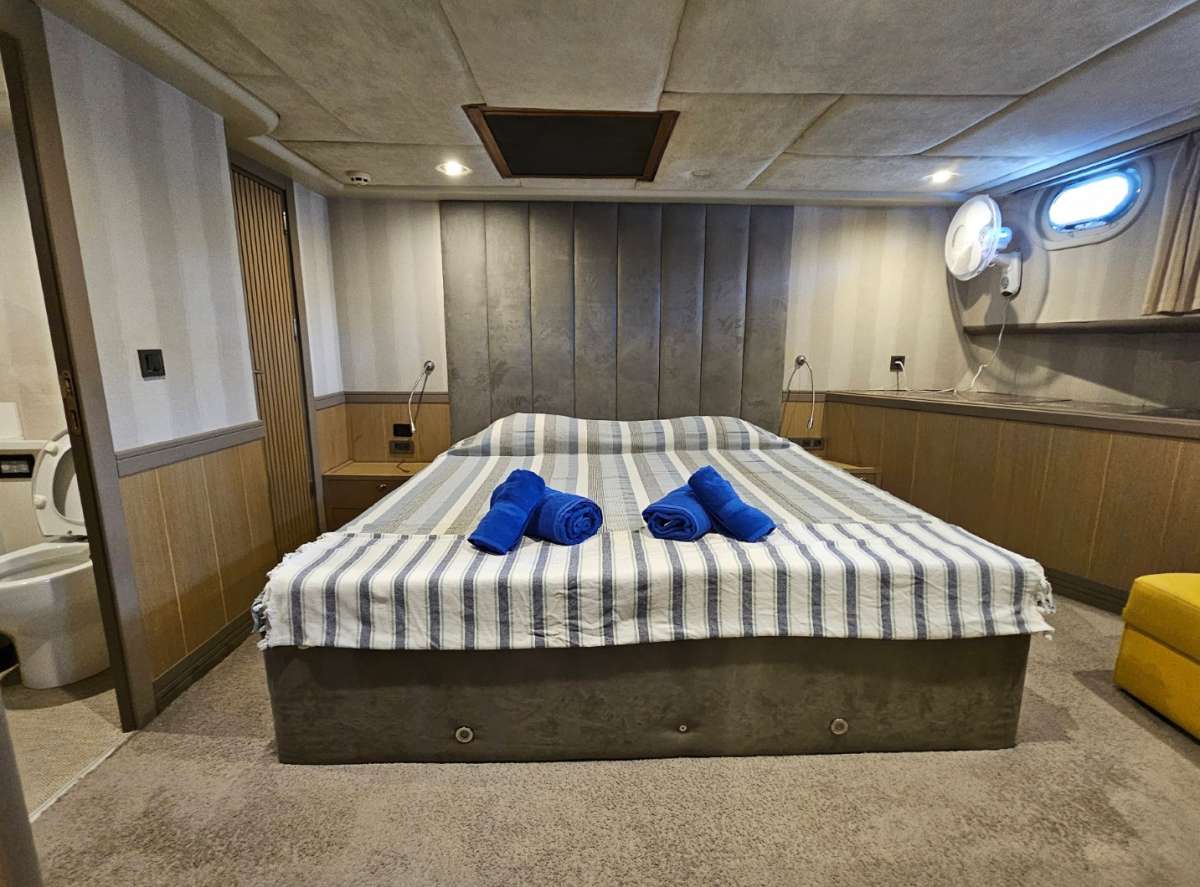 Bed configuration: Aft master cabin: double: 200 x 200 (+ 1 extra bed 185 x 80 if needed), 2 x aft double cabins: 190 x 160, Bow master cabin: 200 x 182, Bow twin cabin: 190 x 85.