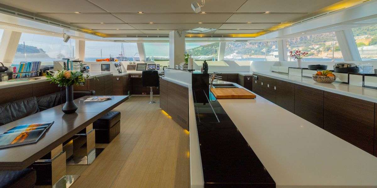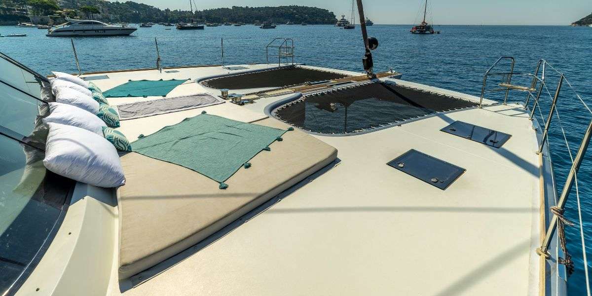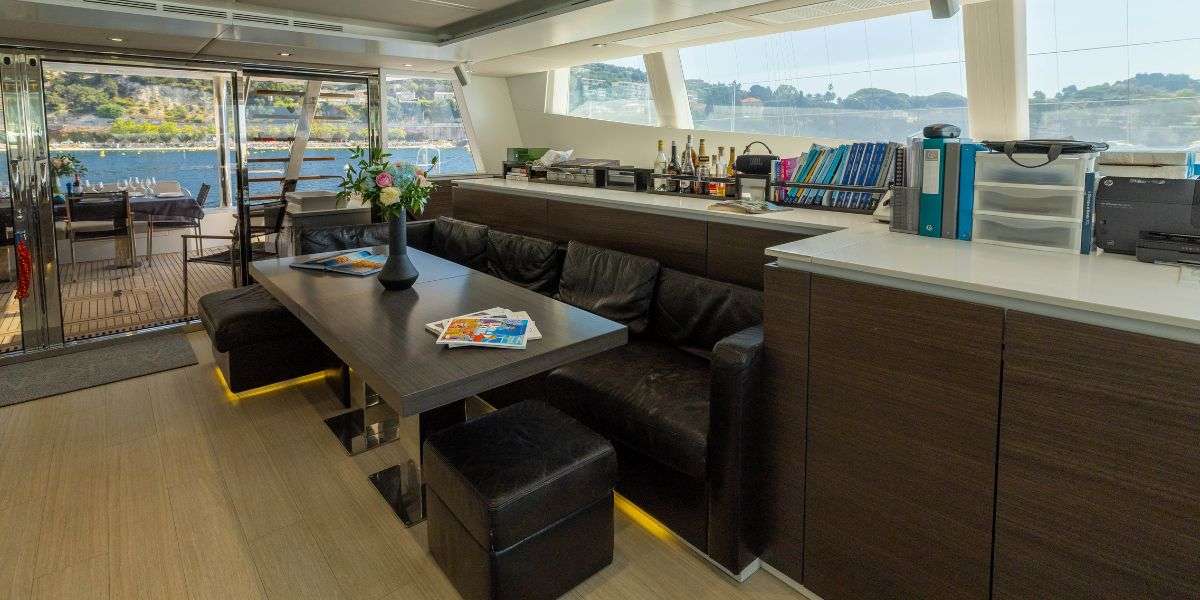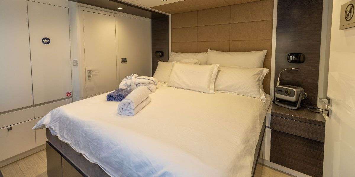 ALKIMIA was launched in 2015 and refitted in 2025, offering a fresh and well-balanced layout designed for comfortable cruising. She accommodates up to 10 guests across 4 cabins, with a dedicated crew of 3 ensuring a smooth and enjoyable experience on board. Her 45 sqm cockpit connects seamlessly to a bright, open-plan saloon, creating an easy indoor-outdoor flow that works perfectly for both relaxing and socialising. The space is filled with natural light thanks to large panoramic windows, while comfortable seating and a pop-up TV with surround sound make it equally suited for quiet evenings on board. Well-suited for both private getaways and social charters, ALKIMIA offers a relaxed and versatile setting to enjoy time at sea.