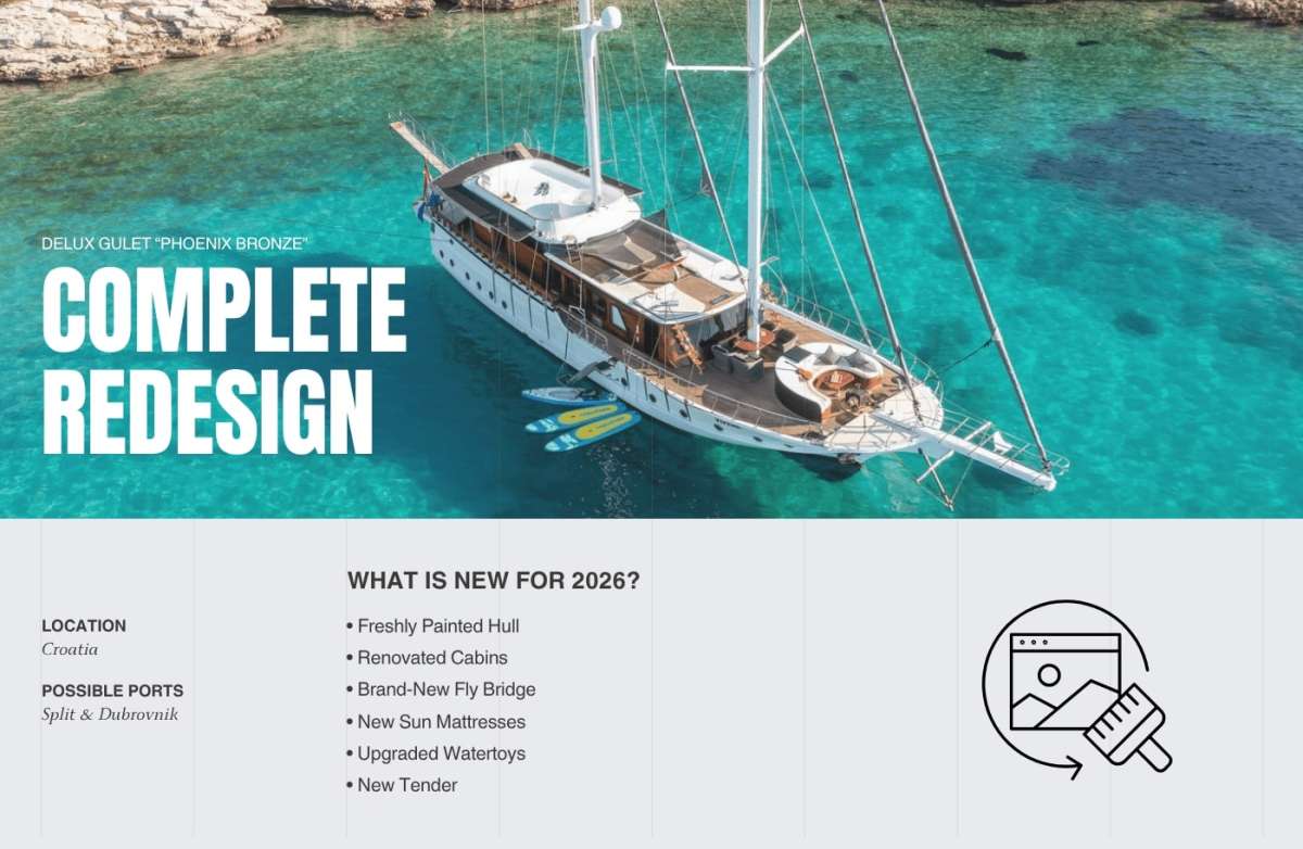 Comfortable accommodation for 12 + 2 guests in 6 guest cabins. There is 1 master cabin, 3 double cabins and 2 double cabins with addditional bed; providing more than enough space to comfortably enjoy perfect cruise in Croatia!
